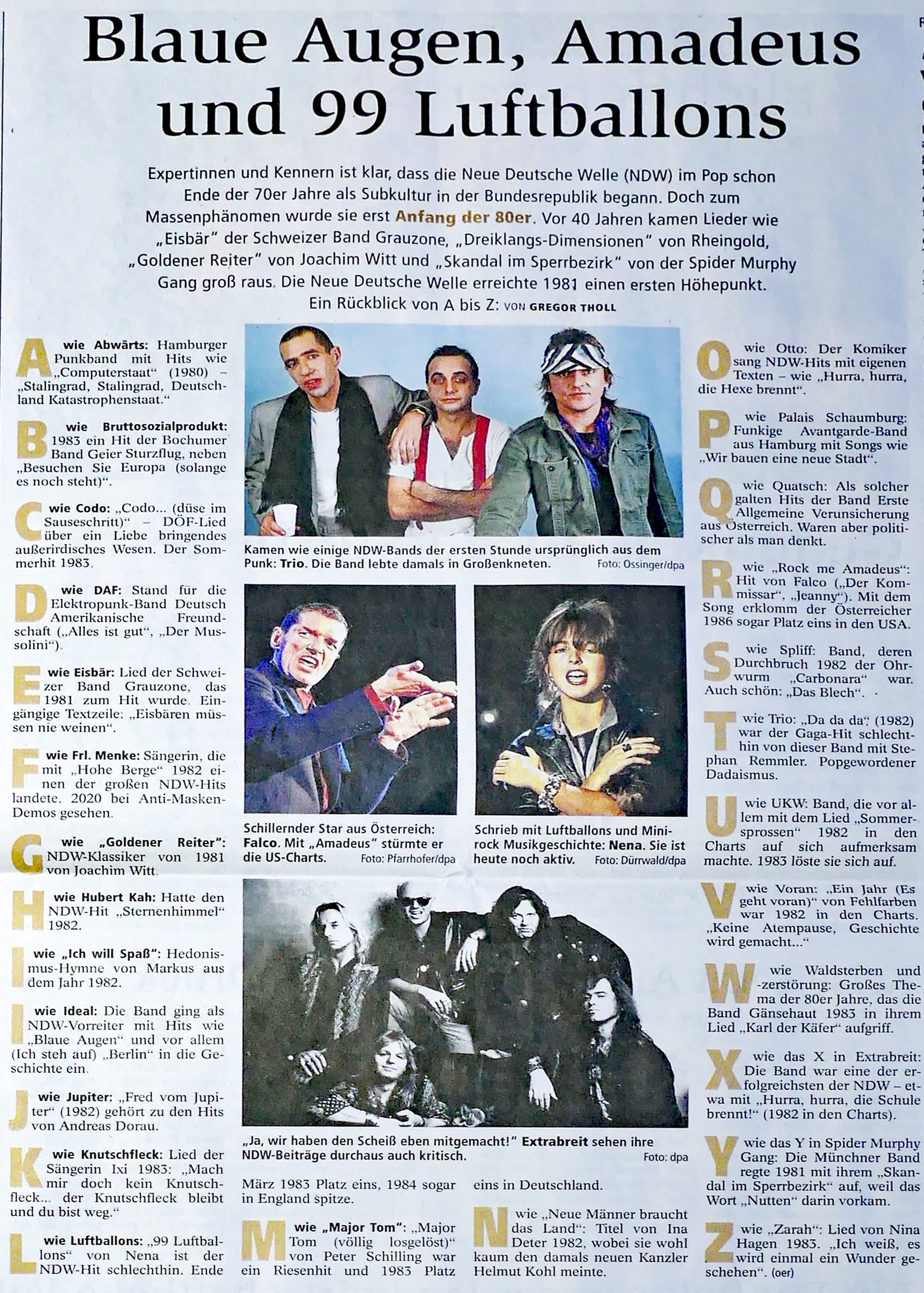 WEST die NDW verschwand dann bald wieder. major tom - völlig losgelöst ein riesenerfolg.