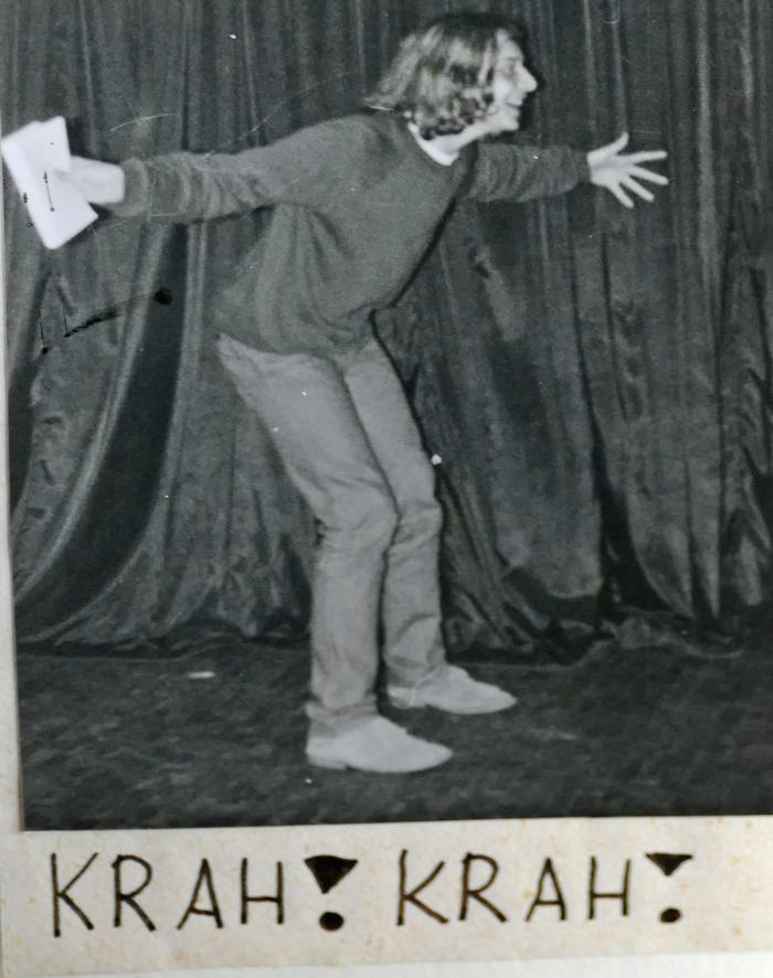 "Dann im II. Akt musste Stefan uns von seinen schauspielerischen Fähigkeiten überzeugen. Sehr schwer war es für ihn, den flattrigen Bewegungen des Raben tierisch zu imitieren. Als dann Volker auf die Idee kam, den Raben auch noch "räbisch" sprechen zu lassen, wurden Stefans Nerven, die schon stark unter dem ewigen "Kra, Kra, Kra" gelitten hatten, fast zum Zerreißen strapaziert. Doch dann wurde von allen Anwesenden bei der Probe nur noch mit "Gurrlauten" gesprochen, bis es bei Stefan auf einmal klickte und er jetzt so super gurrt, als wenn er niemals anders gesprochen hätte."
