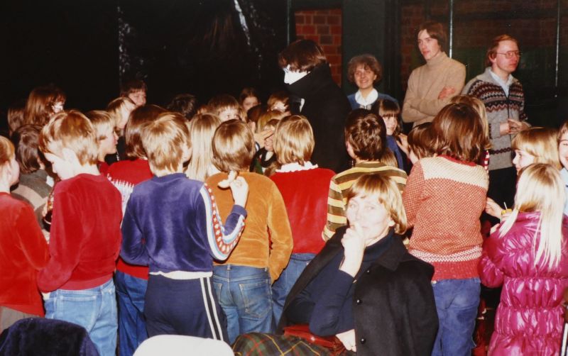 sie unterhält sich mit mädchen und jungen aus dem publikum, auf dem dritten bild mit stefan, der diesmal nur eine verkleidete rolle spielte, aber beim nächsten stück eine der hauptpersonen wird.